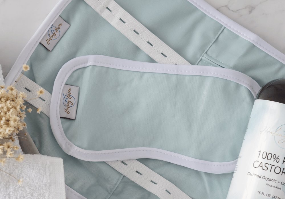- Gather Your Supplies: You’ll need a high-quality, cold-pressed castor oil, a castor oil pack for the target area, and a hot water bottle or heat pack from Healing Haven.
